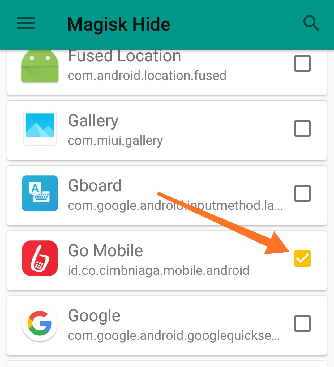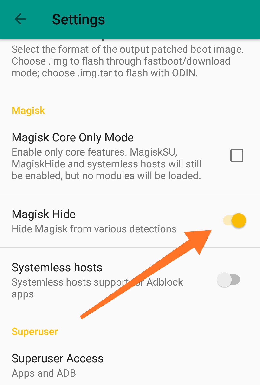 - Aktifkan pilihan Magisk Hide dan tekan tombol kembali
