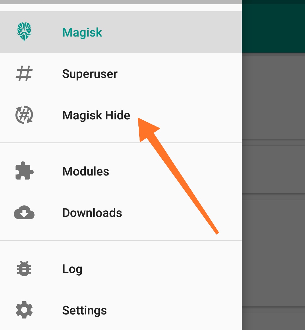 - Anda sekarang akan melihat hidangan Magisk Hide di bilah navigasi samping.
